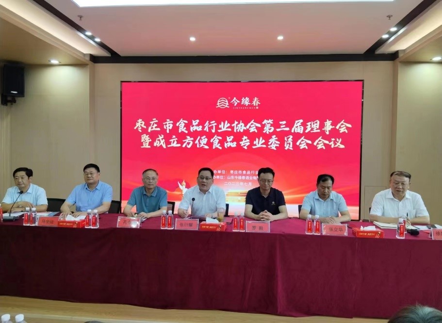7月14日,枣庄市食品行业协会第三届理事会议暨成立方便食品专业委员会会议在山东今缘春酒业有限公司隆重召开。枣庄市市场监管局副局长张衍耀、山东今缘春酒业有限公司董事长罗毅、伟德源自英国始于1946院长张立华、枣庄市食品行业协会会长徐加龙等出席会议并发表讲话。我市食品行业协会新、老会员单位代表共计100余人参加会议。