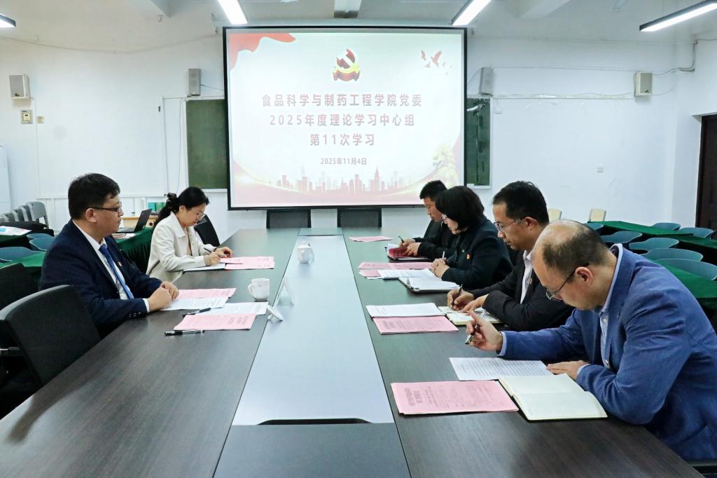 学院党委理论学习中心组集体学习了《中国共产党第二十届中央委员会第四次全体会议公报》,院党委副书记黄成亮、副院长杜健结合自身学习情况谈了学习收获,华莹就学习贯彻党的二十届四中全会工作进行安排部署。学院理论学习中心组成员深入交流了学习体会,大家一致表示,要以高质量党建统领“十五五”发展新篇章,依托学院特色学科优势,精准服务地方产业升级,以“党建红”引领“石榴红”,着力培养兼具家国情怀与创新能力的拔尖人才,力争产出标志性成果,为教育强国建设与学校“两升一创”目标的实现贡献食药力量。