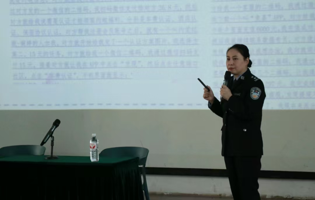 宣讲伊始,聂熙媛以风趣幽默的语言破题,通过"身边案例+情景再现"的方式串联全场,结合实时互动问答,迅速点燃学生参与热情。活动现场气氛热烈,掌声与讨论声此起彼伏,有效打破传统宣讲的单向传播模式。聂熙媛从电信网络诈骗犯罪的定义切入,明确指出此类犯罪具有"远程操控、话术诱导、非接触式作案"三大特征,即犯罪嫌疑人通过电话、网络等媒介,利用预设剧本诱骗受害人转移财物。针对大学生群体易受骗的特点,她系统梳理了刷单返利、虚假网贷、冒充客服、游戏币交易等六大高发诈骗类型,并逐一拆解其作案手法与防范要点。
