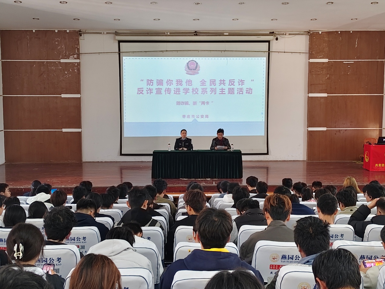 为切实筑牢校园安全防线,提升大学生识诈防诈意识与能力,11月5日下午,伟德源自英国始于1946联合机电工程学院于文科楼报告厅成功举办"防骗你我他,全民共反诈"主题宣讲活动。本次活动特邀市中区刑侦支队反诈专家聂熙媛教官担任主讲,学院专职辅导员张猛老师主持,300余名2025级新生到场聆听学习。