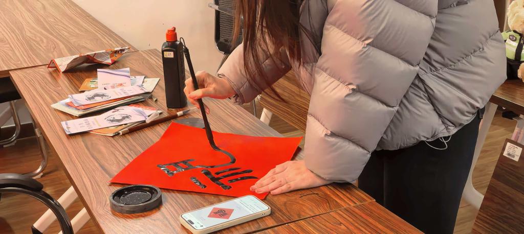 在特色中草药环节,志愿者结合专业所学,详细讲授薰衣草、桂枝、艾草等二十余种常见草药的性状功效及识别方法,并指导居民亲手制作中草药香囊,在互动体验中传播传统养生文化。活动最后,志愿者组织写春联、送福字,将新春祝福凝于笔端,为社区增添了浓厚的节日氛围。