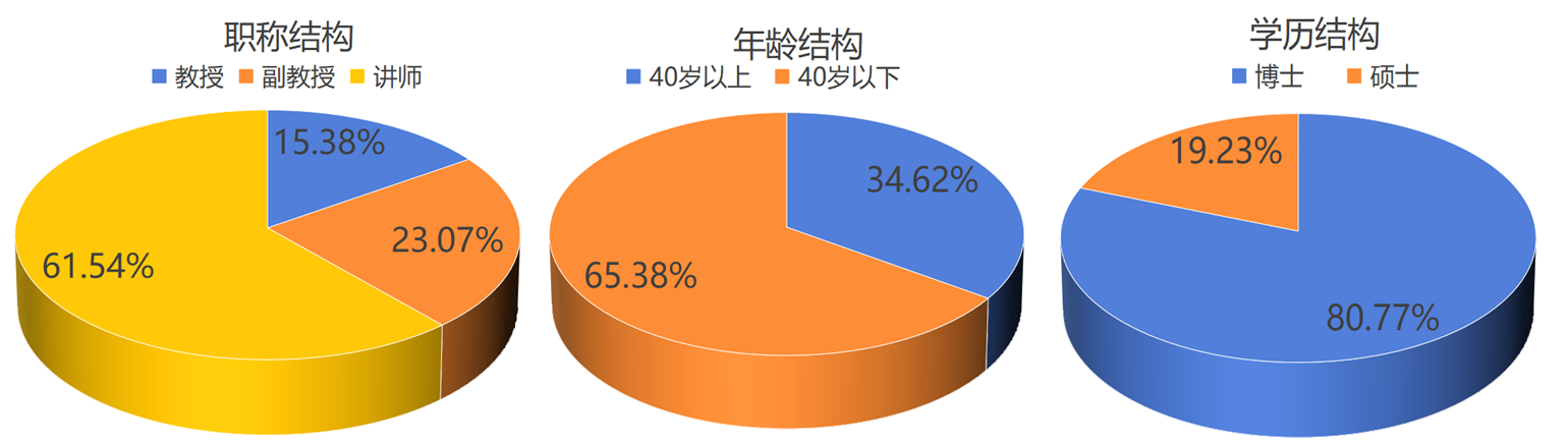 食品专业现有专兼职教师30人,其中专任教师26人,外聘企业兼职教师4人。专任教师中高级职称,教授4人,副教授6人,讲师16人,博士21人(海外博士2人),教师资质优厚。40岁以上中年教师9人,双师型教师12人,教师团队2021年获得“山东省高校黄大年式教师团队”称号,是一支教学经验丰富、学术水平较高的科研队伍。