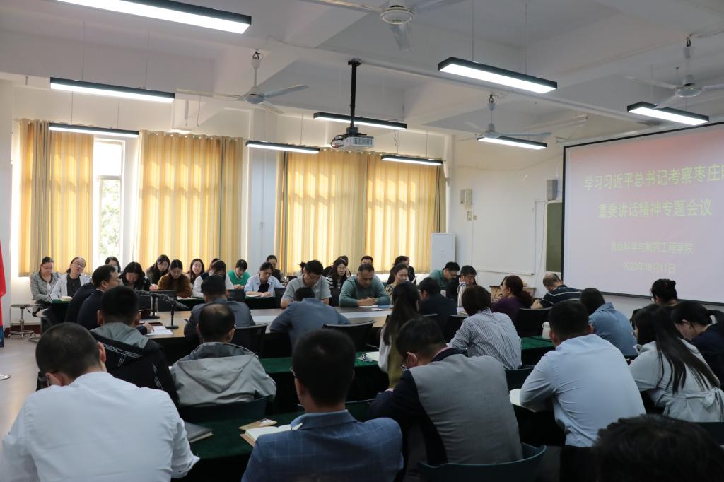 学院党总支书记滕聿峰传达并领学了习近平总书记在山东枣庄考察的重要讲话精神,他指出,习近平总书记亲临枣庄视察指导,就培育壮大石榴产业、促进农业增效和农民增收作出重要指示,为我们依托自身学科优势挖掘石榴资源禀赋、服务乡村振兴指明了方向。学院要把习近平总书记视察枣庄重要指示精神,转化为推动石榴产业科研高质量发展和学院各项工作的强大动力,以实际行动坚定拥护“两个确立”、坚决做到“两个维护”。全体教职工要把学习习近平总书记在山东枣庄考察的重要讲话精神作为当前和今后一个时期的重要政治任务,坚决做到完整、准确、全面学习领会落实,做到家喻户晓、人人皆知。同时要立足岗位实践、擦亮鲜明品牌、激发奋进动力,为学院硕士点建设和学校国内一流应用型大学建设作出积极贡献。