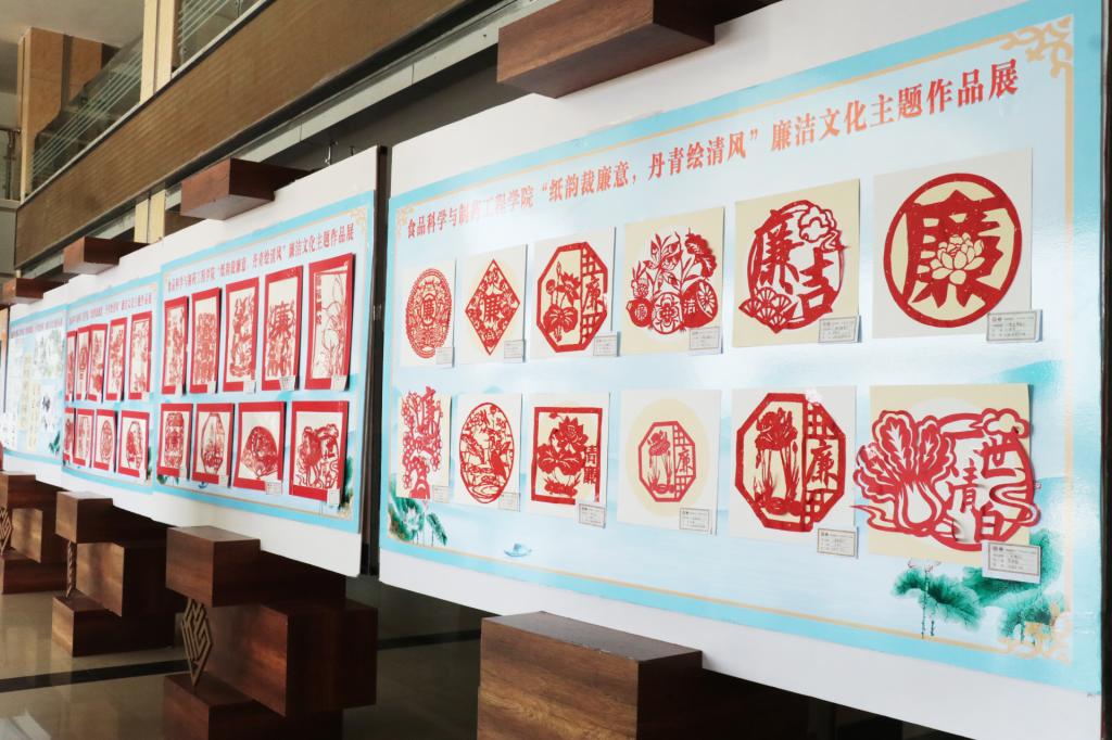 此次展览作品形式多样,涵盖书法、国画、剪纸等多个类别,共展出作品60件。展览上,一幅幅书法作品笔锋刚劲有力,书写着廉洁自律的警言警句;一幅幅国画作品意境深远,以梅兰竹菊等象征高洁品质的元素,传递出崇廉尚洁的价值追求;剪纸作品则以独特的艺术视角,展现了清正廉洁的故事与精神。这些作品均出自学院师生之手,他们用艺术的语言表达了对廉洁文化的深刻理解,融思想性、艺术性、观赏性于一体,让观众在欣赏艺术之美的同时,也接受了一次深刻的廉洁教育。