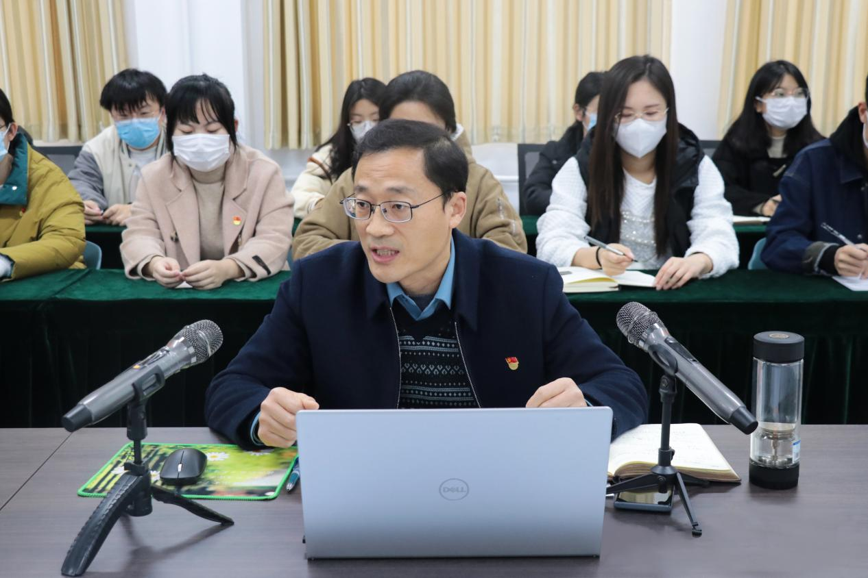 滕聿峰指出,全院师生要深刻领悟“两个确立”的决定性意义,自觉用习近平新时代中国特色社会主义思想凝心铸魂,同时提出三点要求:一是深入学习、领会、宣传、贯彻党的二十大精神。做到学思践悟、融会贯通,持续把思想和行动统一到党的二十大精神上来;二是坚守育人初心,做学生成长成才的引路人。教师要做到培根铸魂、启智润心,努力成为党和人民满意的“四有”好老师;三是坚定理想信念,做新时代“四有”青年,学生要做到有理想、敢担当、能吃苦、肯奋斗,让青春脉搏与新时代同频共振。