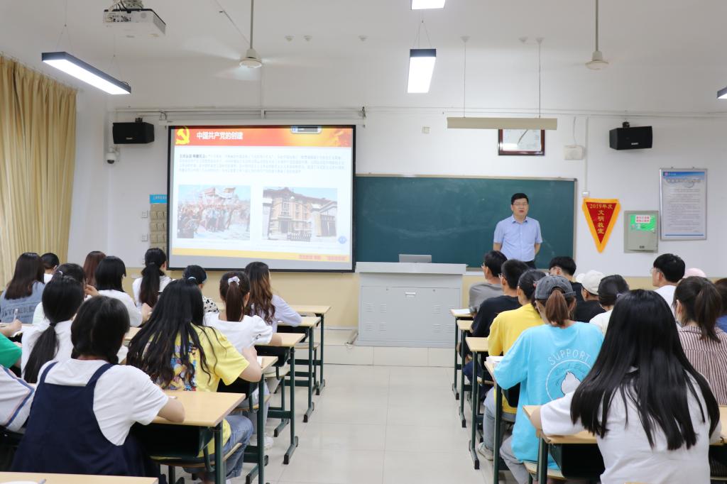 党课讲述了中国共产党的创建,中国共产党早期组织,马克思主义在中国的传播,中国共产党创始人的革命事迹和人生沉浮,以及中国共产党领导土地革命、抗日战争和新民主主义革命的伟大历程,弘扬了老一辈革命家坚定的政治信仰和视死如归的奋斗精神。周玉亮号召同学们,在党史学习中涵养初心使命,继承和发扬革命先烈的伟大精神,做马克思主义的坚定信仰者,不断锤炼对党忠诚、干净、担当的政治品格,用信仰信念信心照亮青春奋斗路。