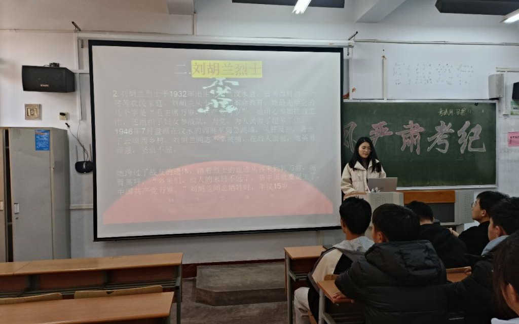 各班团支书结合多媒体设备为同学们生动鲜活的介绍了革命先烈的英雄事迹、革命友情和坚若磐石的理想信念,使同学们深切地感受到革命先辈对祖国的赤胆忠心和他们患难与共、福祸相依的情谊。