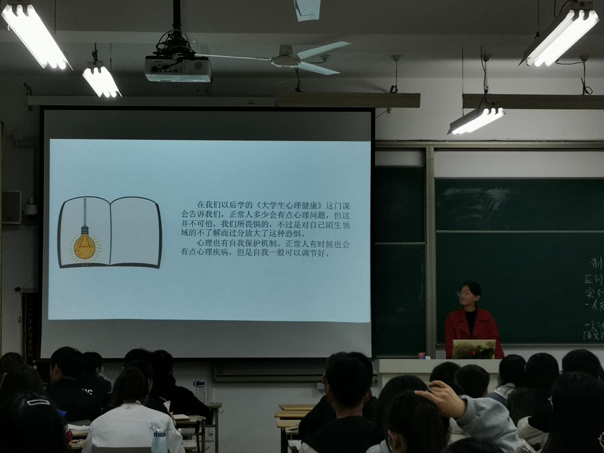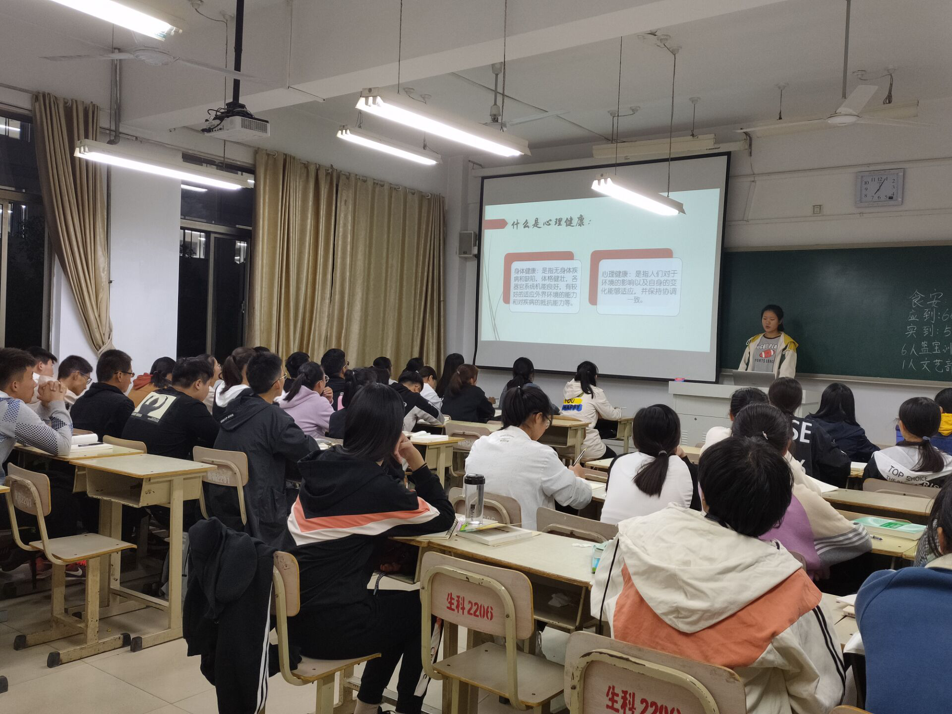 班会上,心理委员带领大家学习了有关心理健康,珍爱生命,远离心理困扰等方面的知识,分享了心理健康方面的典型案例,讲解了在大学生活中容易出现的心理问题和现象。强调了心理健康与同学们的生活习惯,人际关系,个人情感都有着密切的联系,影响着大家日常的学习生活,每个大学生都应该认识到心理健康的重要性。面对进入大学后遇到的压力,要学会调整,积极应对,为自己树立一个正确的方向和目标,做好大学四年的学业规划。最后,同学们对学习生活中遇到的难题展开讨论,在交流中寻找解决办法,纷纷表示会努力疏通个人心理障碍,加强同学们之间的沟通交流。