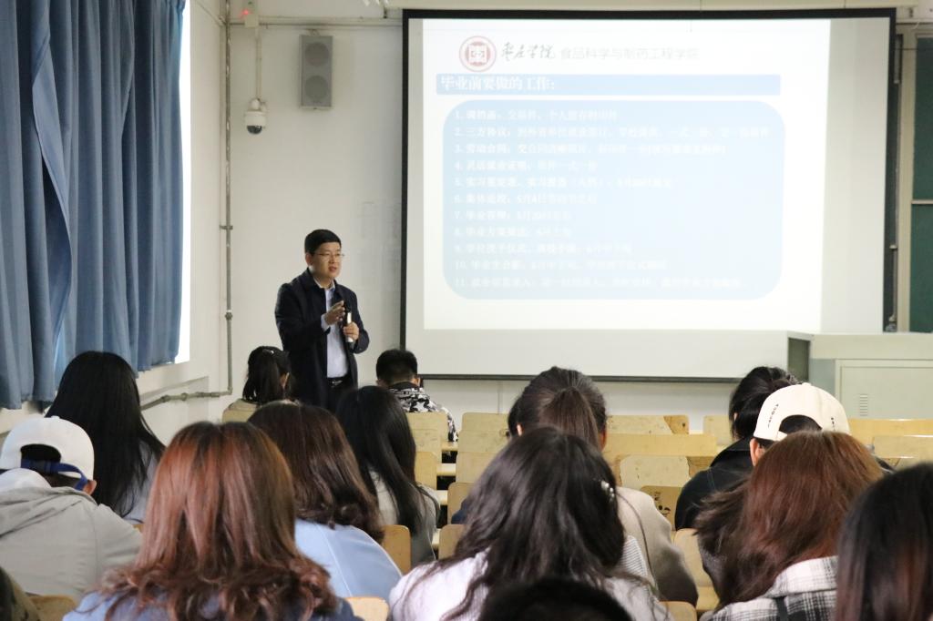 会上,周玉亮讲解了山东高校毕业生就业信息网登陆流程、管理使用,档案整理要求,说明了升学、网上签约、非派遣省外签约、劳动合同、灵活就业等就业形式的注意事项、签约流程。最后,他要求所有毕业生要及时做好毕业论文和毕业设计,认真积极准备毕业论文答辩。