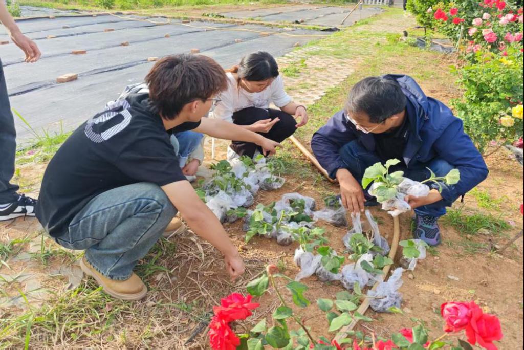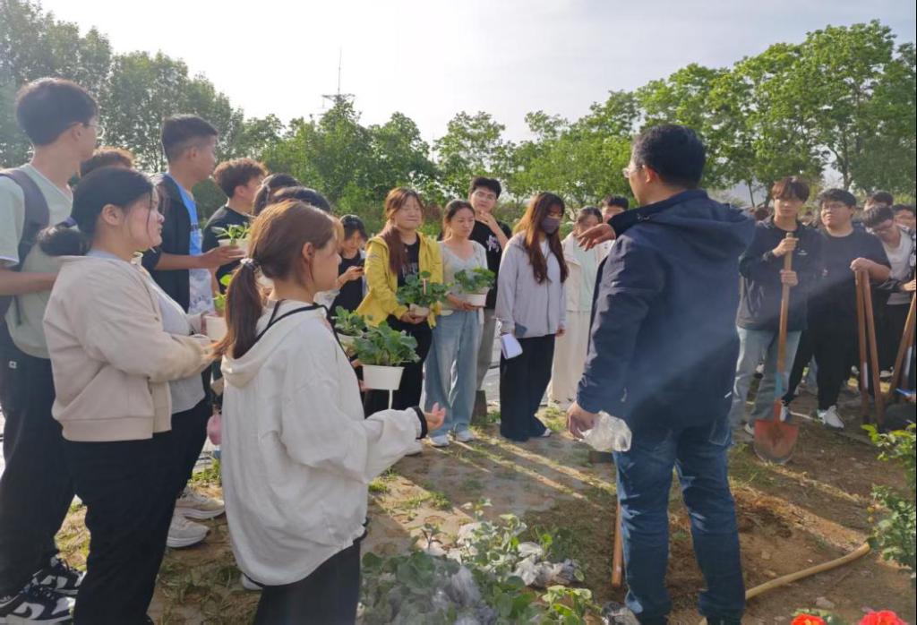 首先,黄成亮向同学们讲解了葫芦在非遗文化中具有的丰富象征意义和吉祥的寓意,他指出这些寓意不仅体现了葫芦在非遗文化中的重要地位,也反映了人们对未来生活的美好祝愿和对传统文化的传承。随后他结合自身实践经验,向同学们详细讲解了葫芦的生长习性、育苗的基本知识和葫芦种植的注意事项,接着亲自示范播种、覆土等种植流程,使同学们对葫芦种植有了更加直观和清晰的认识。随后,在黄成亮指导下,同学们分工协作,小心翼翼地翻土、播种、浇水,亲身体验葫芦从播种到成长的初步过程。