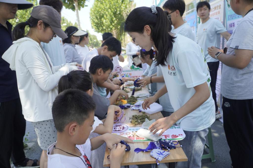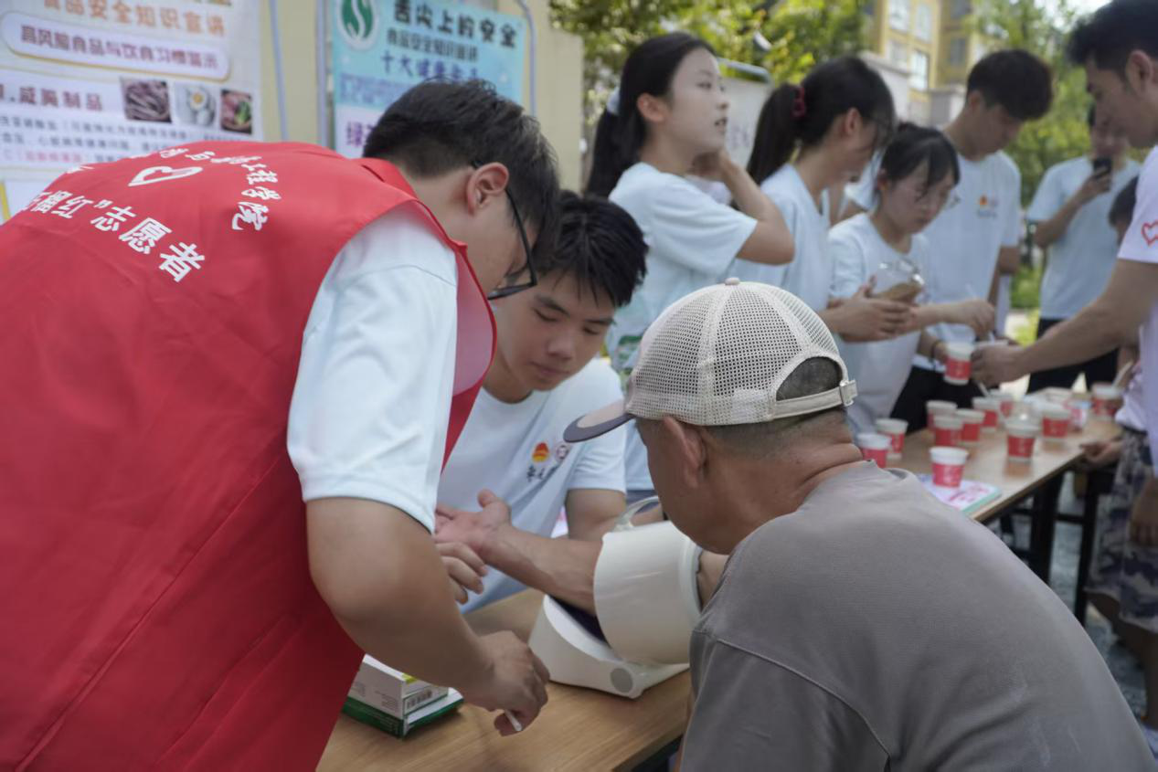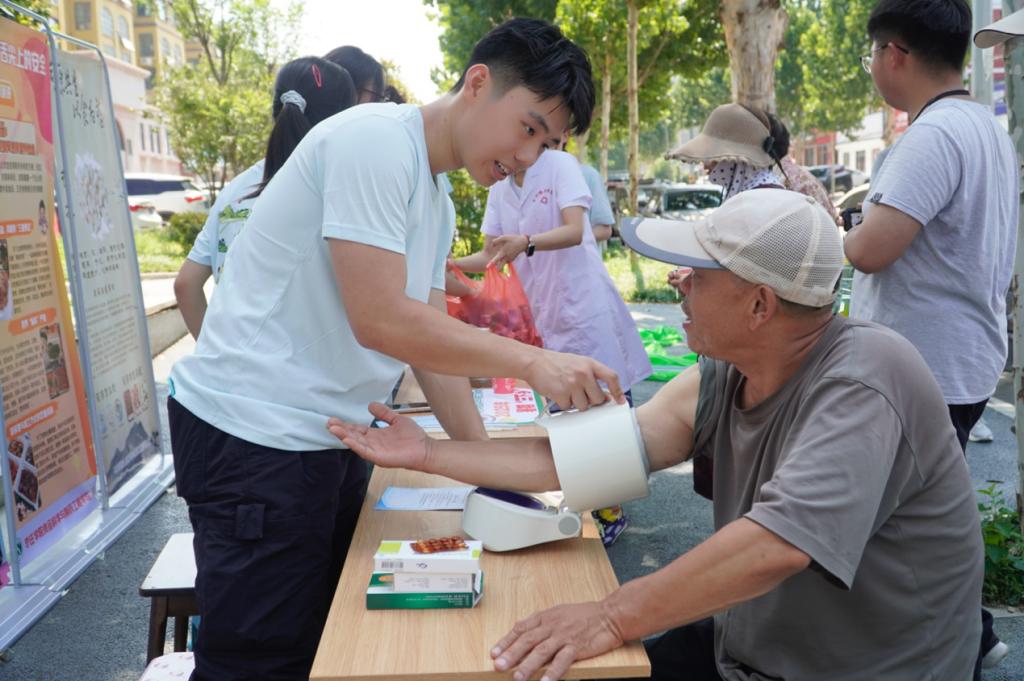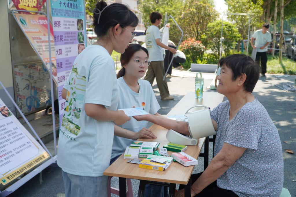 服务队充分发挥学科专业特色,联合社区卫生所开展了用过期药品兑换中草药驱蚊包的特别活动,既引导村民清理了家庭药箱隐患,又普及了中医药文化。专业医护人员和志愿者还为村民免费测量血压、血糖,从饮食、运动、作息等方面给出个性化的健康指导,帮助村民树立绿色生活理念。