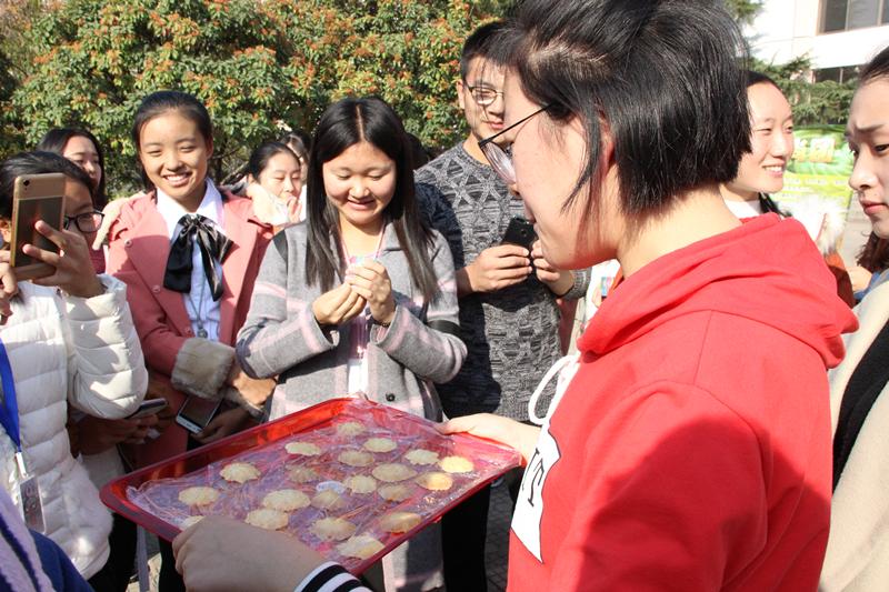 活动中,相关负责人向大家介绍了美食的制作过程,使同学们对制作的美食有了初步了解。进入实验室后,同学们先熟悉了烘烤箱等仪器的使用,在社团团长和副团长的指导下,各同学根据自己的创作理念做了各种各样形状的糕点,糕点进入烤箱后,同学们热情洋溢的谈论着自己的创作,并时不时发出欢笑声,香味飘出烤箱,幸福感、成功感顿时在同学们的心中萌生。作品出炉后同学们拿起手机记录下自己制作的美食,最后同学们一起享用了此次的美食盛宴。