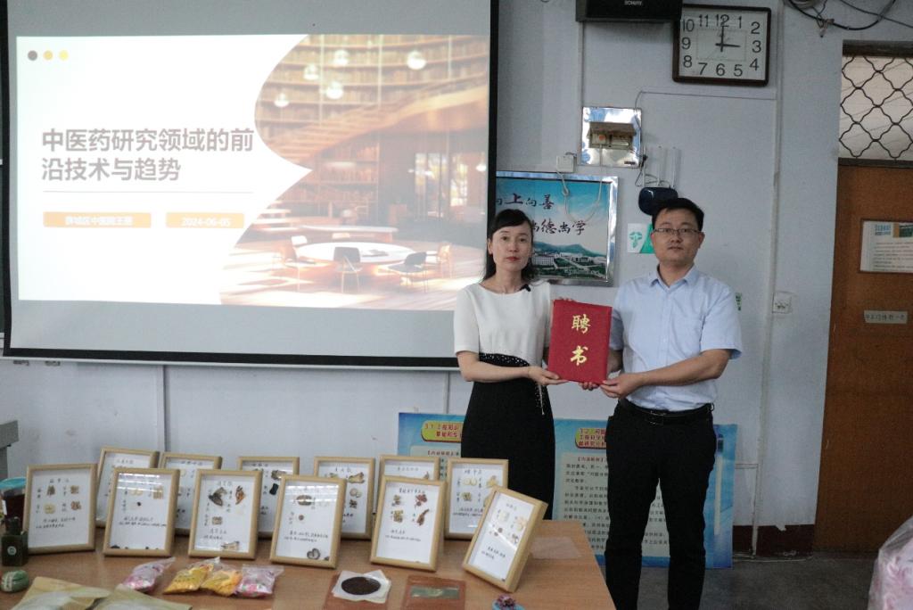 会上,王京龙院长为王丽副院长颁发了客座教授聘书。王丽副院长从中医药的发展历史由浅入深,系统论述了新技术对中医药研究创新发展的影响,展望了中医药研究前沿技术的发展趋势。此外,王丽结合26年中药制剂研发实践经验,分享了新质生产力赋能中药制剂研发、药膳研发、大健康产业研发的心得体会。为同学们提供中药药膳、中药养生茶饮、中药文创产品的免费品鉴、交流、分享等互动活动。会后,王丽与师生们进行了深入的交流,并就师生们提出的问题做出了耐心解答。