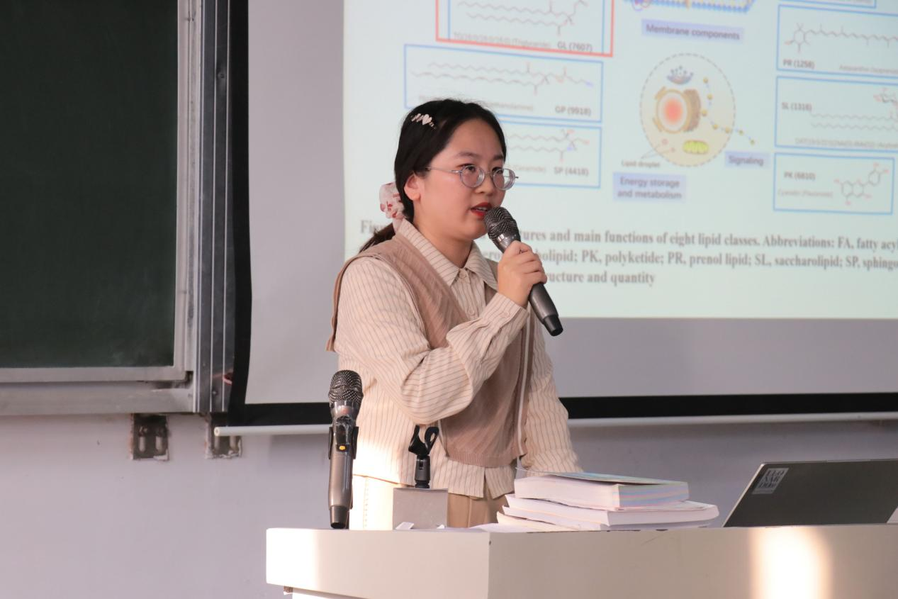报告会上宋荣珍围绕脂质的分离分析、生物利用度两个方面的内容展开,阐述了脂质在营养评价中的作用,重点介绍了利用色谱技术分离脂质的方法。最后,宋荣珍分享了所在科研团队在脂质生物利用度上取得的最新研究进展。会后宋荣珍与师生们进行了深入的交流,并就师生们提出的问题做出了耐心解答。