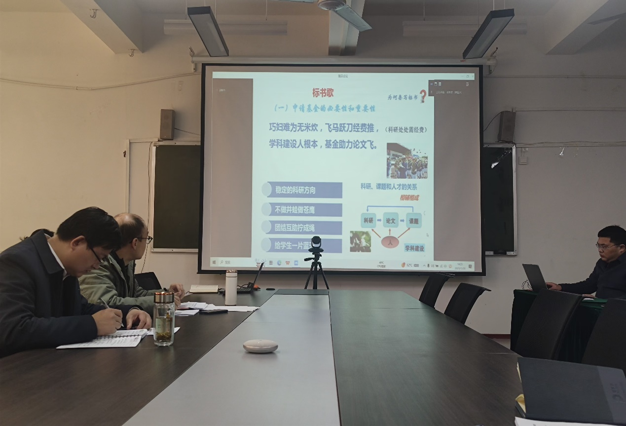 徐长庆教授以《国自然标书撰写的重点、难点和技巧》为题,从国家自然科学基金项目评审专家和申请者的不同视角,用“标书歌”的形式深入浅出地为大家讲解了包括科研选题、摘要、立项依据、技术路线等方面的撰写技巧。王京龙指出,项目负责人一定要充分认识基金申报的重要性和紧迫感,做好规划,注重前期基础积累和标书撰写质量,双管齐下,争取尽快实现国家基金申报的突破。