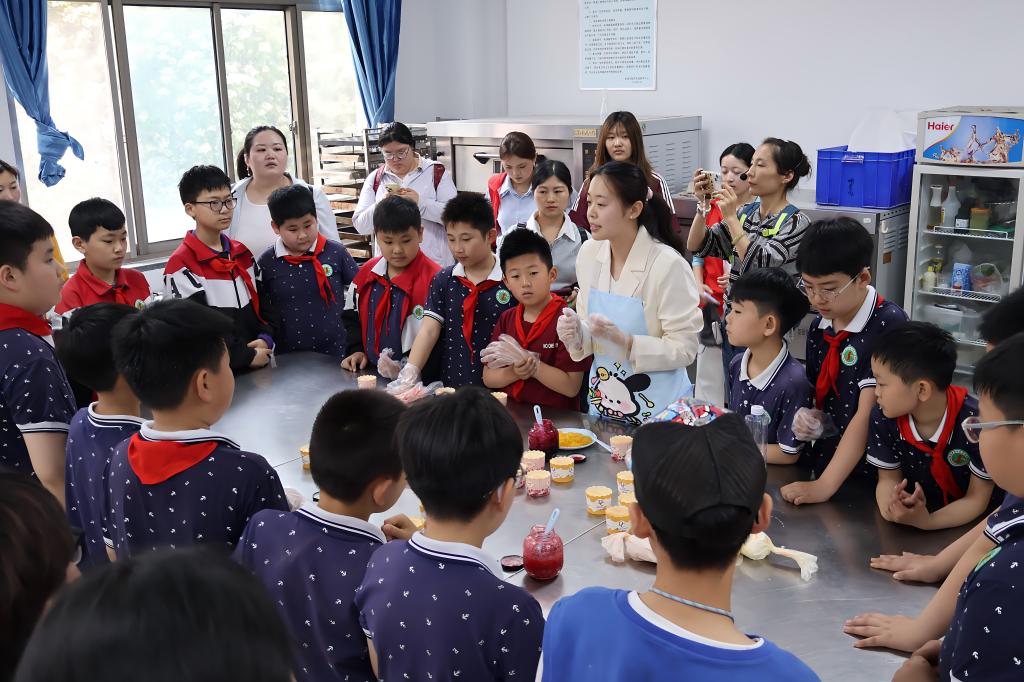 活动伊始,大家走进光电工程学院实验室,亲手完成电路连接、磁悬浮实验与简易望远镜制作,在直观体验中感受科学的奇妙与魅力。随后,同学们来到生命科学学院实验楼,走进动物标本室探寻生物进化树的演变历程,又在烘焙体验区亲手制作糕点,将“民以食为天,食以安为先”的理念融入实践,在动手过程中学习食品安全知识。中场休息时,心理与教育科学学院附属儿童剧团献上精彩话剧展演,为研学活动增添了灵动的艺术气息。